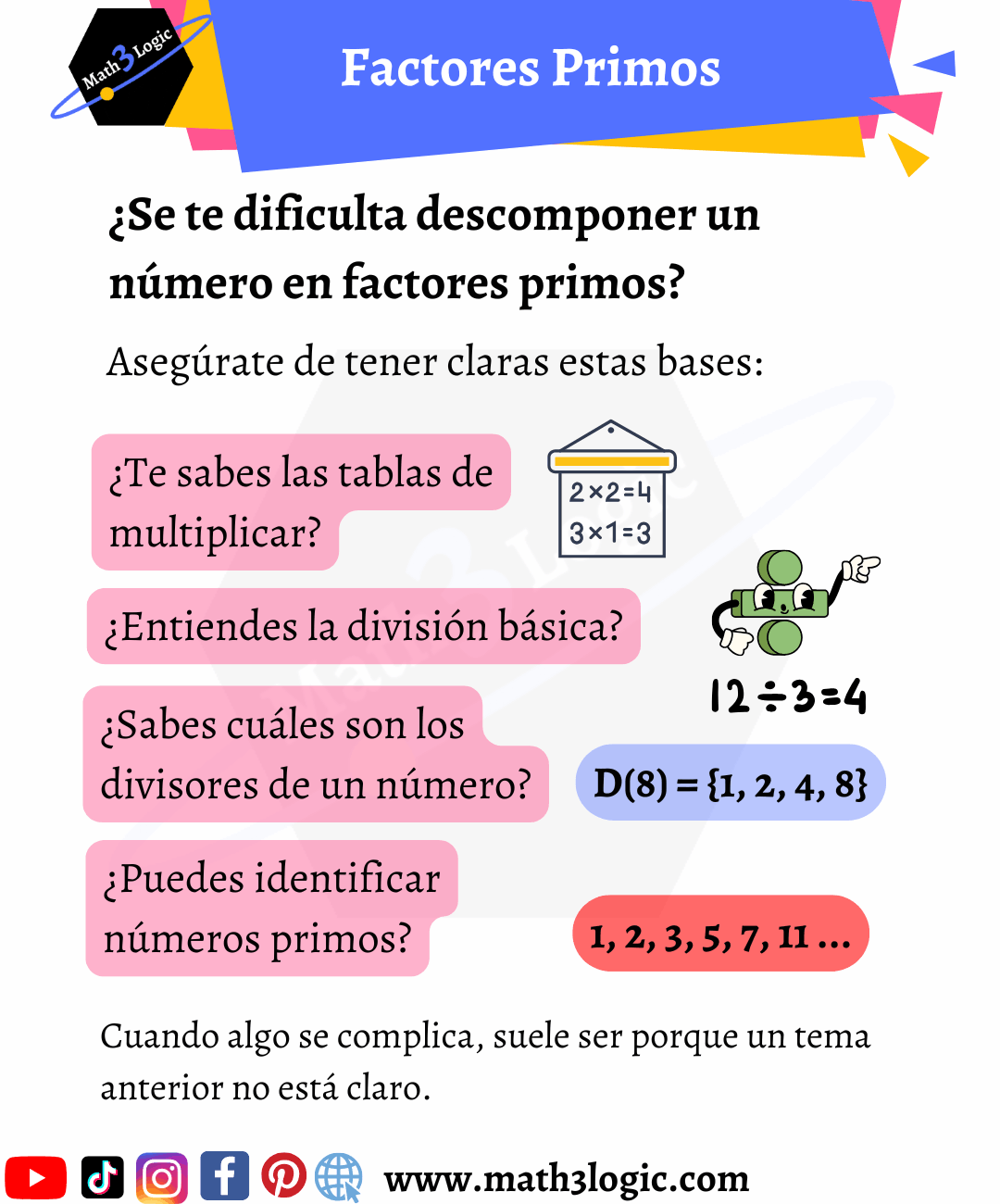En Math3logic®️me esfuerzo por crear material divertido y útil para ti🥰. Si decides descargarlo/compartirlo, te pido por favor que dejes el logo intacto y todo lo que representa a Math3logic©️ . También, te agradecería mucho si no modificas las imágenes ni las subes a otros sitios web. ¡Gracias por preferirme y por apoyar el trabajo que hago! 💙